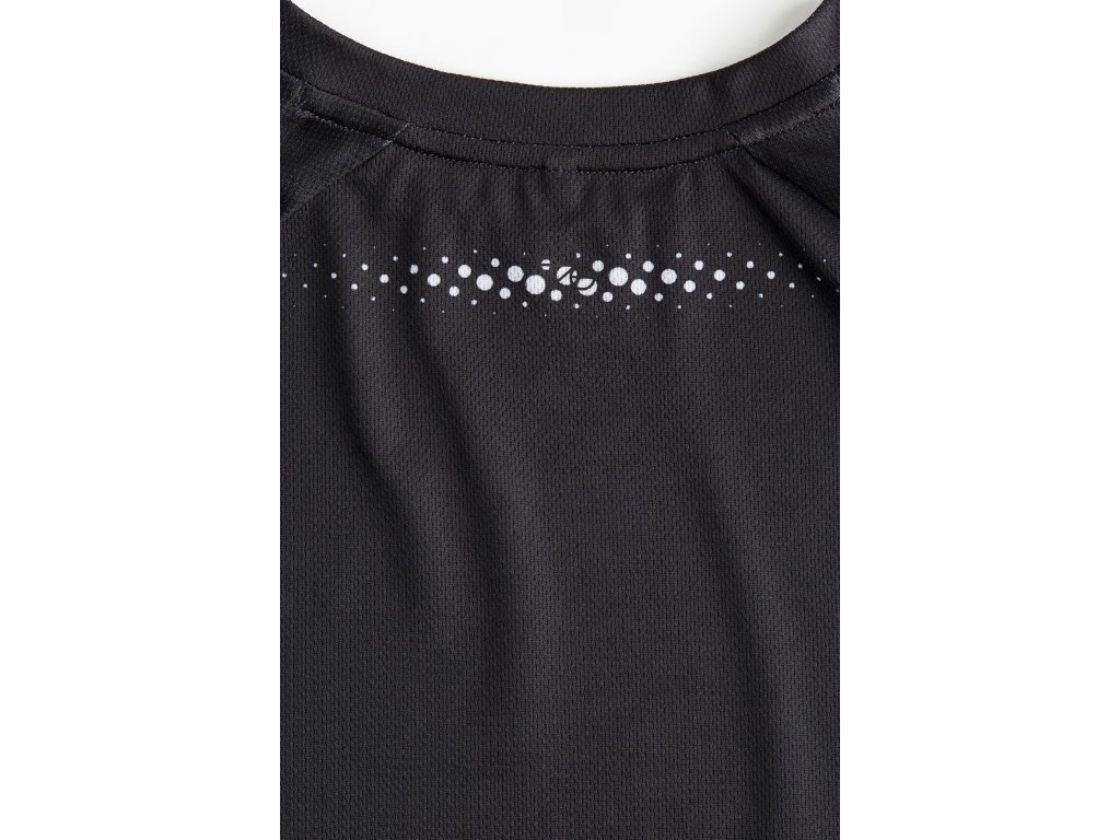 Tričko má klasický střih (Regular fit), kulatý výstřih a krátké raglánové rukávy, které snižují tření švů při pohybu a zvyšují komfort při sportu.