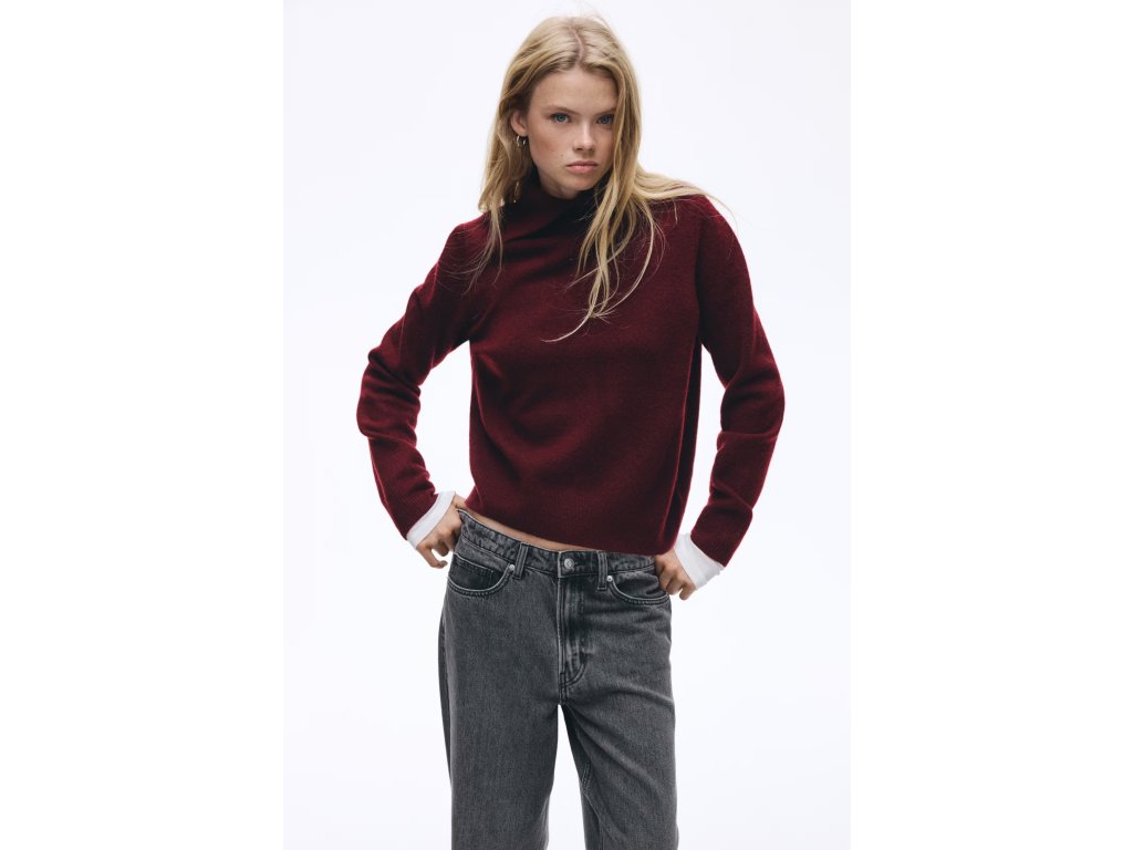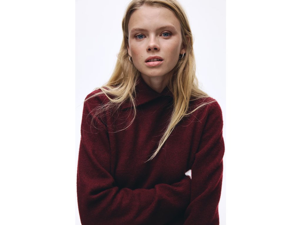 H&M svetr s rolákem – vínový, vel. XS