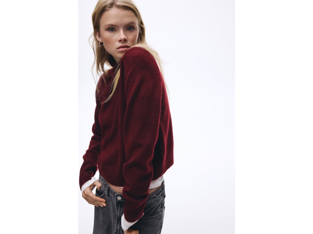 Stylový dámský svetr H&M v elegantní vínové barvě je ideální pro chladnější dny i každodenní outfit. Je vyroben z měkkého a jemného úpletu, který je příjemný na dotek a poskytuje pohodlí při nošení.
