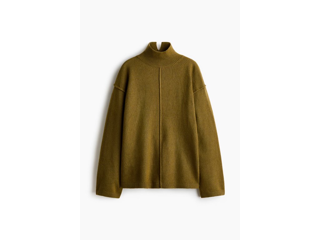 H&M Svetr s vysokým límcem – zlatě olivová, vel. XL
