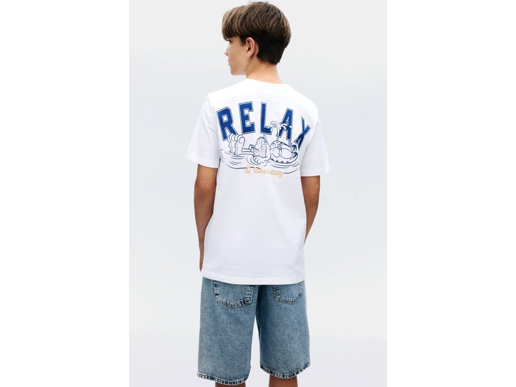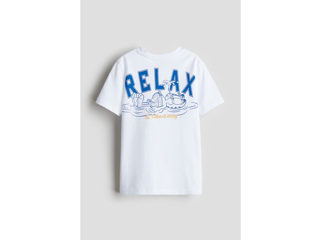 Bílé tričko s ikonickým Garfieldem a nápisem „Relax & take it easy“ pro maximální pohodu.