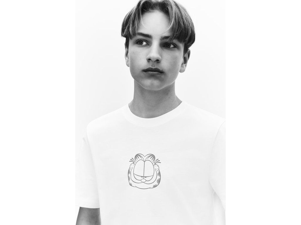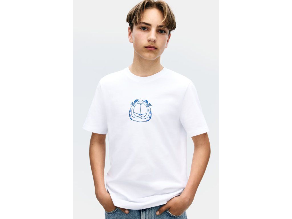 H&M tričko s potiskem Garfield bílé 146/152