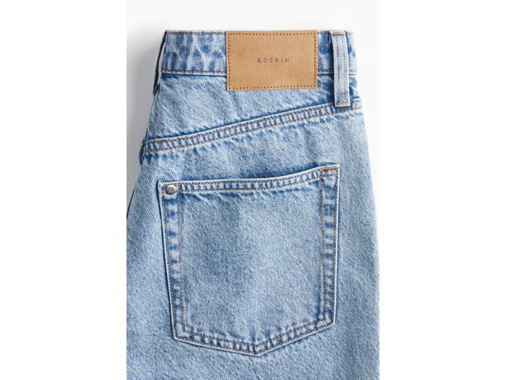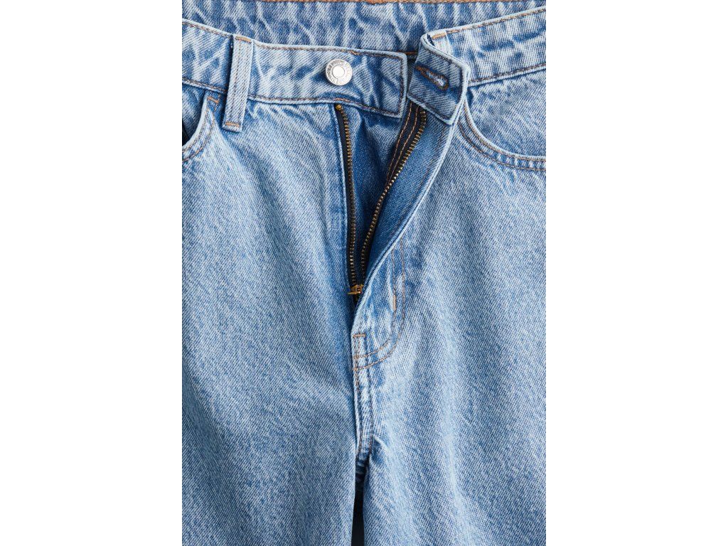 Džíny H&M jsou vyrobeny z pevného bavlněného denimu, který je zpočátku tužší, ale postupně se přizpůsobí postavě a změkne. Regular fit střih v kombinaci s širokými nohavicemi vytváří moderní siluetu.