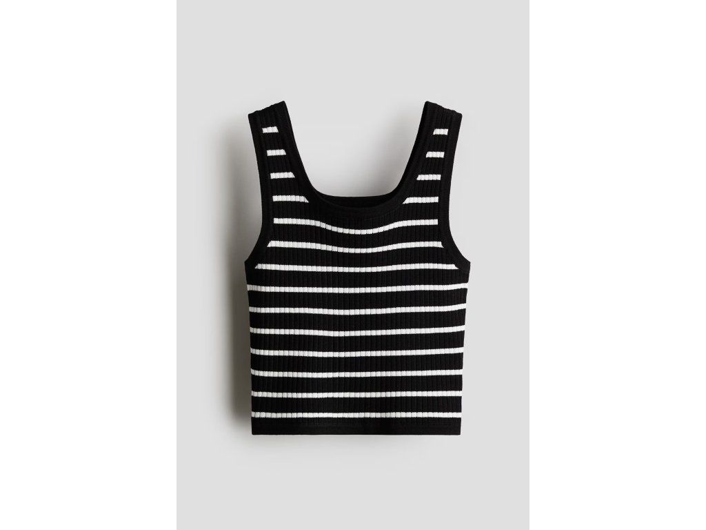 H&M žebrované tílko crop top černé pruhované 170 (14Y+)