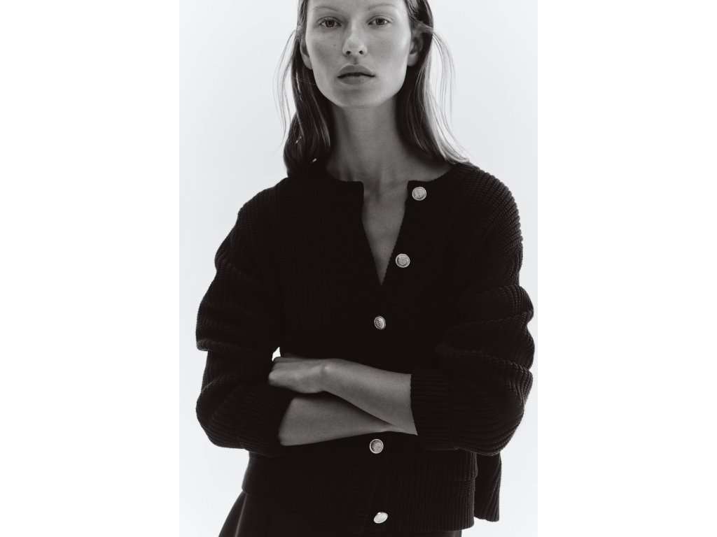 H&M Žebrovaný propínací svetr – černý (vel. M)