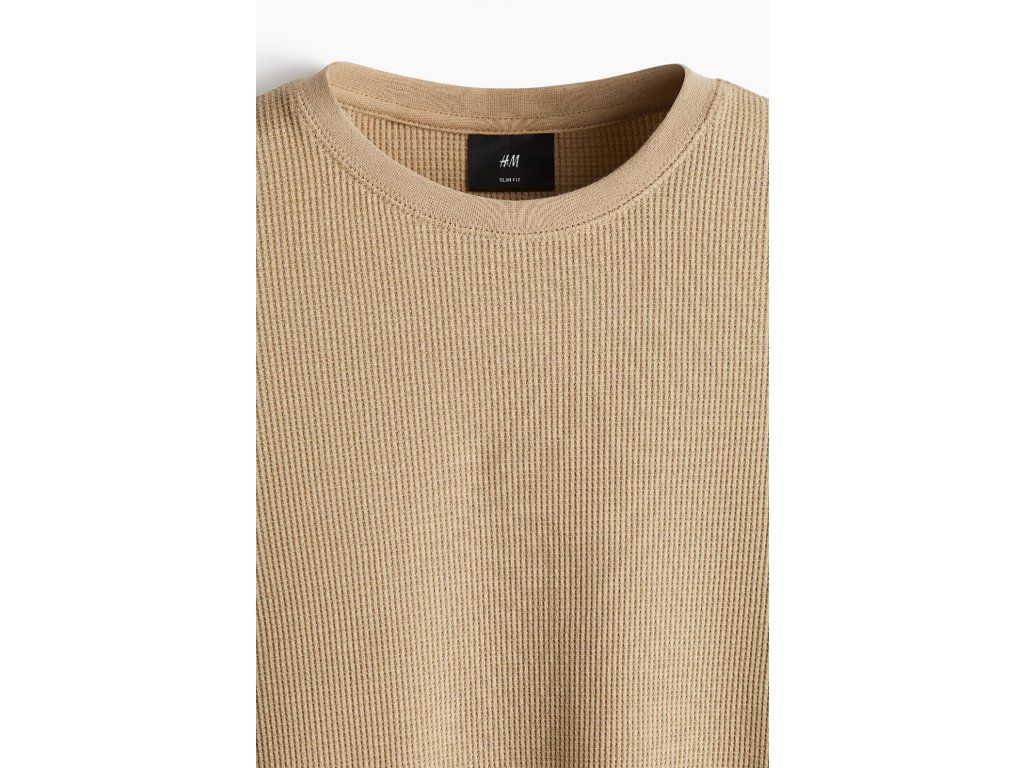 H&M žerzejové triko s vaflovou vazbou Slim Fit béžové vel. XL