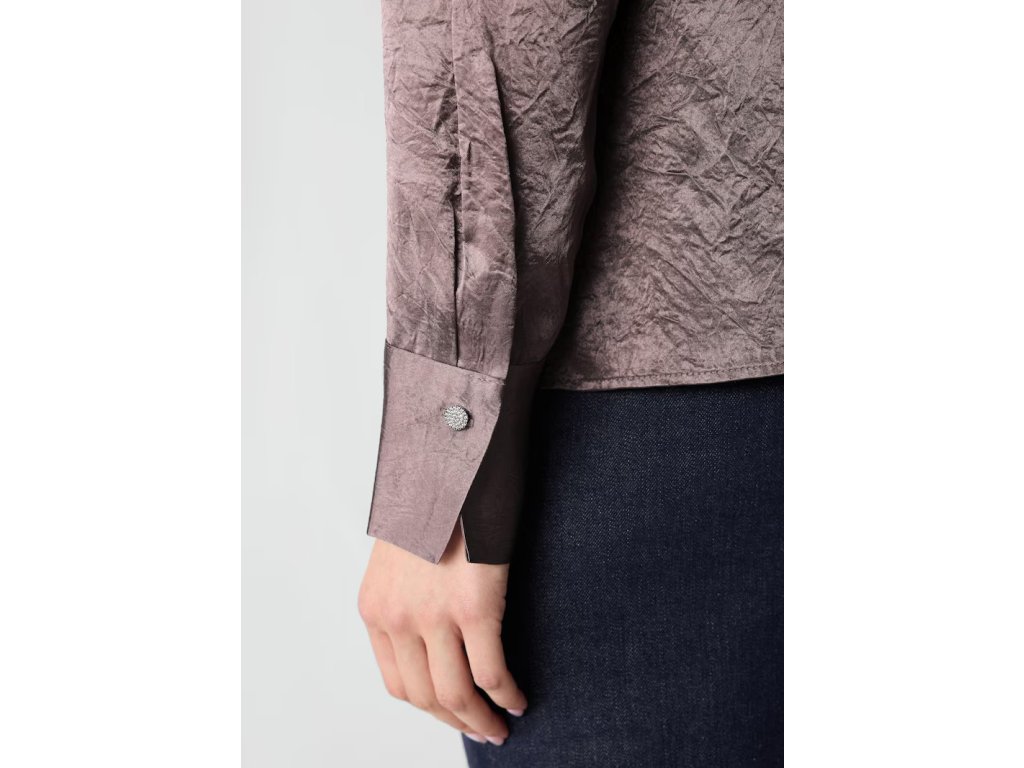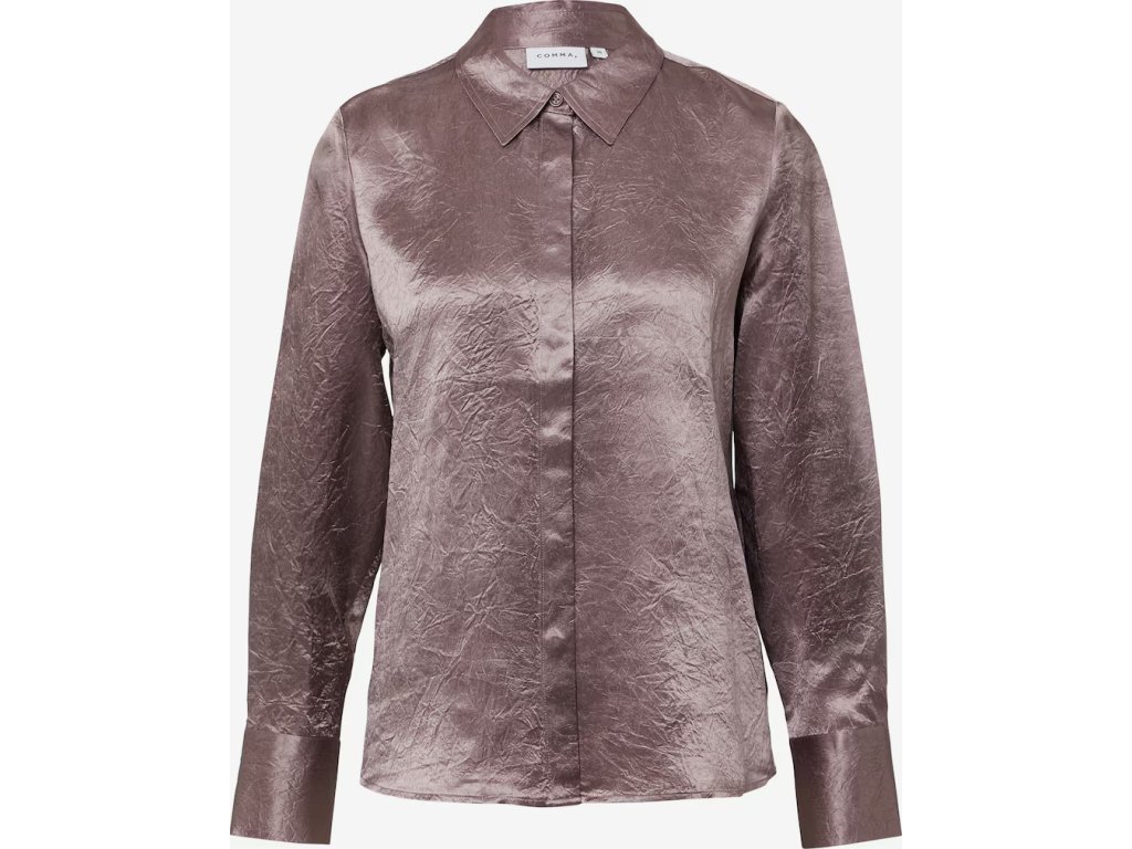 Halenka od značky COMMA je vyrobena ze 100% acetátu, který materiálu dodává luxusní vzhled s jemným leskem a zajišťuje splývavost střihu. Horní část je opatřena tradičním límečkem typu Kent, který dodává oděvu profesionální charakter. Dlouhé rukávy jsou zakončeny manžetami s jedním knoflíkem, což umožňuje jejich snadnou úpravu. Halenka má normální délku i střih, takže se přirozeně přizpůsobí postavě a poskytuje vysoký komfort při celodenním nošení. Kvalitní zpracování a čistý design dělají z tohoto modelu univerzální prvek, který lze snadno kombinovat s kalhotami i sukněmi.