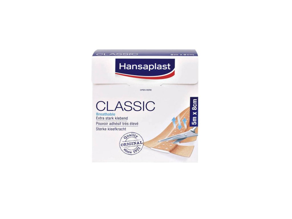 Náplast na roli Hansaplast Classic je spolehlivou součástí každé lékárničky. Je vyrobena z odolné a prodyšné textilie, která zajišťuje pohodlné nošení.