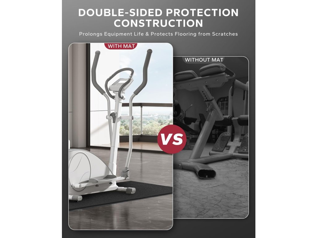 Odolná podložka pod fitness vybavení HAPBEAR o rozměru 30x60 palců (76 cm x 152 cm) z kvalitního PVC materiálu poskytuje vynikající ochranu podlah (dřevěné, dlažba, koberec) před poškrábáním, tlumí nárazy a snižuje hluk při cvičení. Je protiskluzová, odolná proti potu a snadno se čistí. Vhodná pod různé fitness stroje jako jsou běžecké pásy, eliptické trenažéry, rotopedy a posilovací lavice. Bezpečná pro děti i domácí zvířata, vyrobena z materiálů bez škodlivých látek. Snadno se sroluje a skladuje.