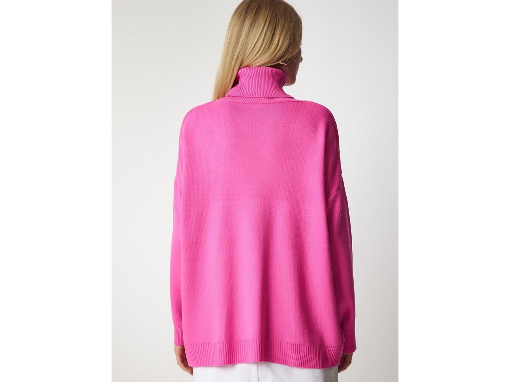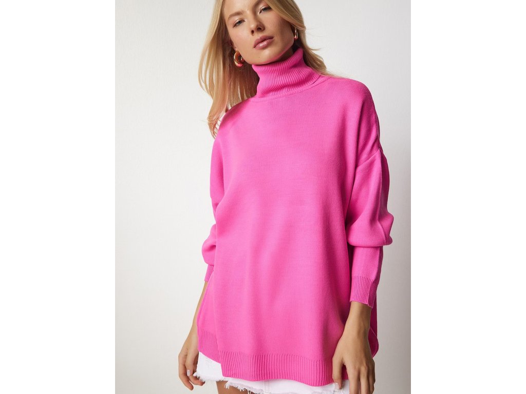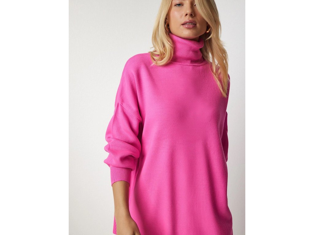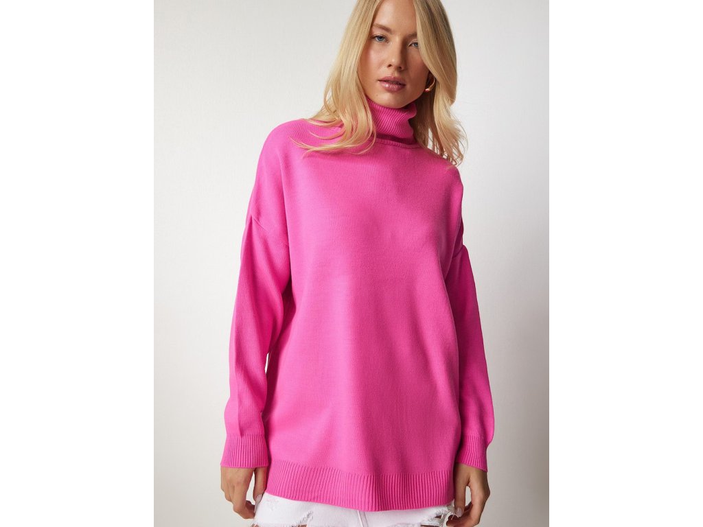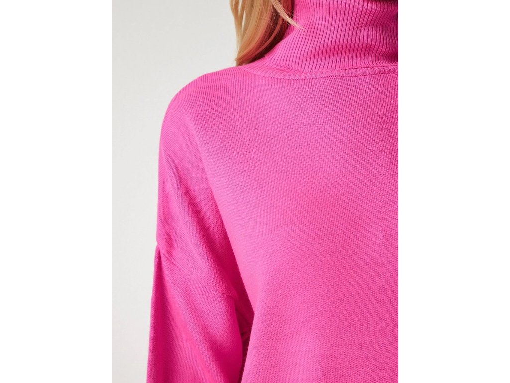 Happiness İstanbul Dámský růžový pletený rolák Oversize BV00084