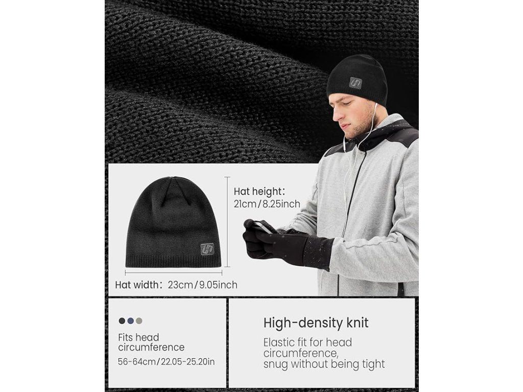 HASAGEI Warm Fleece Beanie černá (Univerzální velikost 5 3/8–6 5/8)