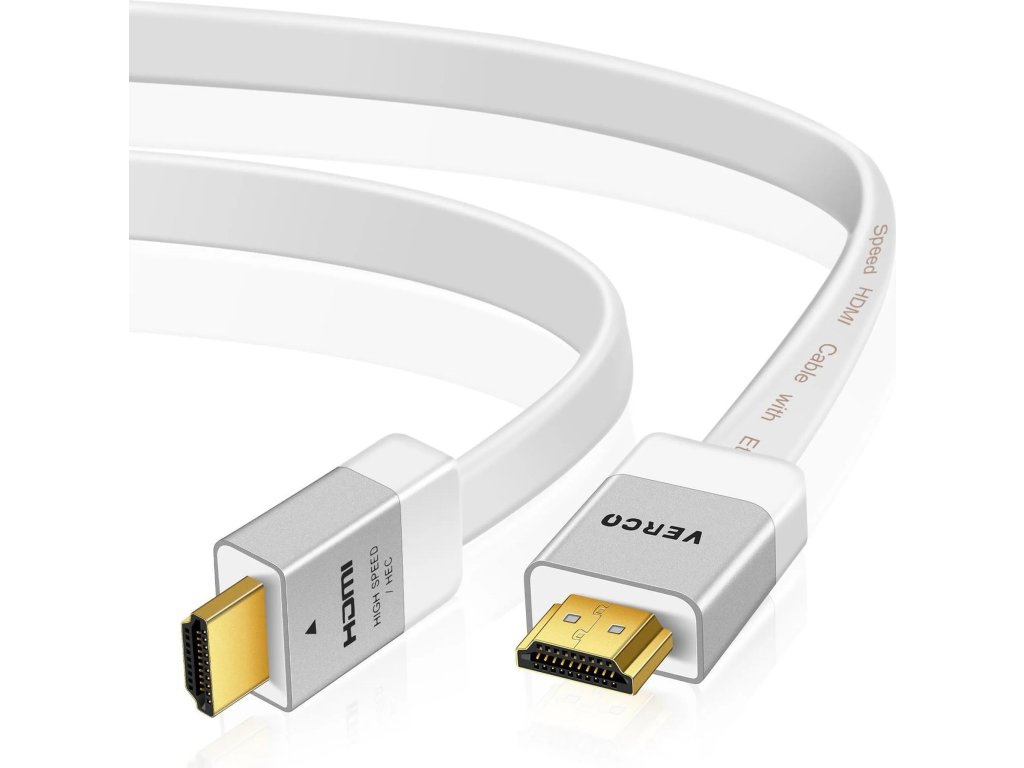 Plochý kabel VERCO HDMI 20 je profesionální řešení pro domácí kina a špičkové aplikace které vyžadují optimální datový tok. Vyrobeno podle normy HDMI 20. Poskytuje vysokou rychlost přenosu dat až 144 GBit/s. Podporuje rozlišení 4K/UHD (3840x2160p @60Hz) a Full HD (1920x1080p @120 Hz). Podpora 3D a více streamů pro audio a video. Zvukové funkce zahrnují ARC (Audio Return Channel). Funkce 2x HDMI typ A konektory s pozlacenými kontakty. Podpora funkcí Ethernet (síťová komunikace) a CEC (ovládání zařízení). Instalace Velmi plochý tenký design umožňuje diskrétní pokládku za sokl pod podlahu nebo do lišt. Kabel je dvojitě stíněný pro čistý přenos obrazu bez rušení. Zpětně kompatibilní se staršími standardy HDMI (10 až 14b). Ideální pro připojení TV monitorů SAT přijímačů DVD/BluRay/UHD přehrávačů herních konzolí (PS3 PS4 PS5 XBox) notebooků a PC.