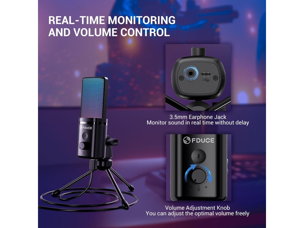 Herní USB mikrofon FDUCE M160 s RGB podsvícením a stativem