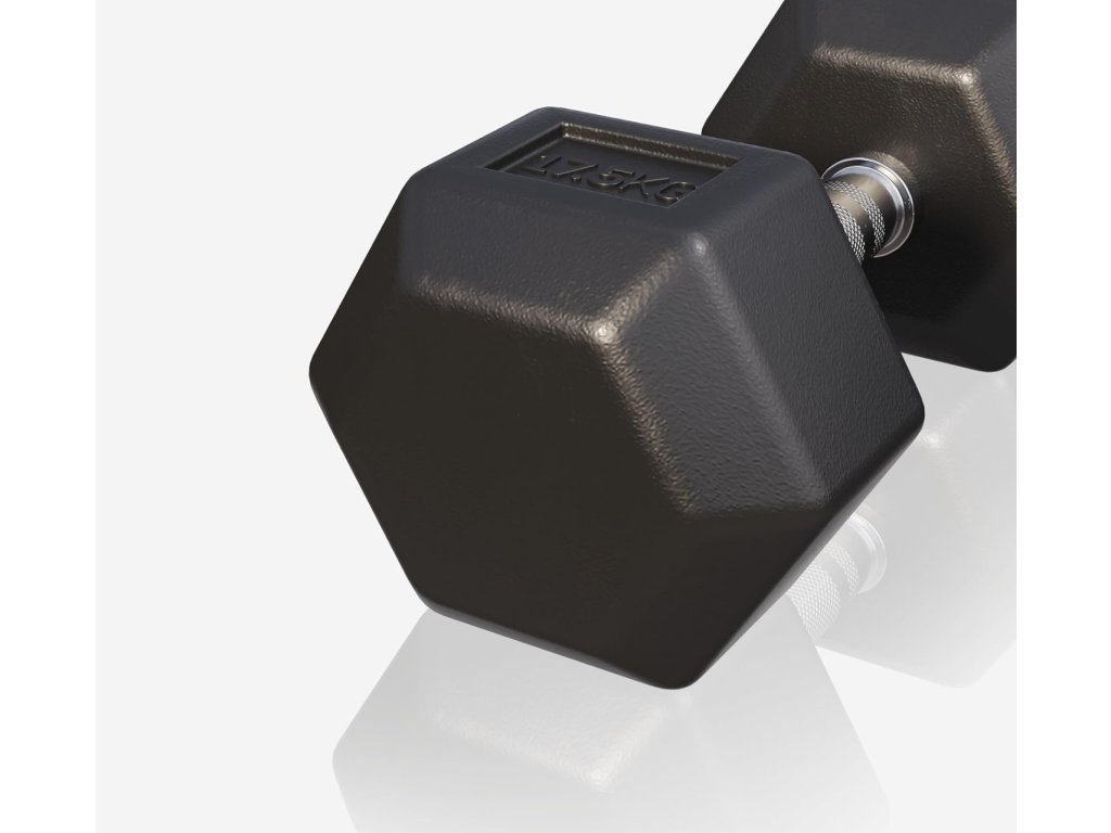 Kompaktní hexagonová činka o váze 17,5 kg s chromovanou ergonomickou rukojetí a pogumovanými závažími. Ideální pro posilování horní části těla doma i ve studiu.