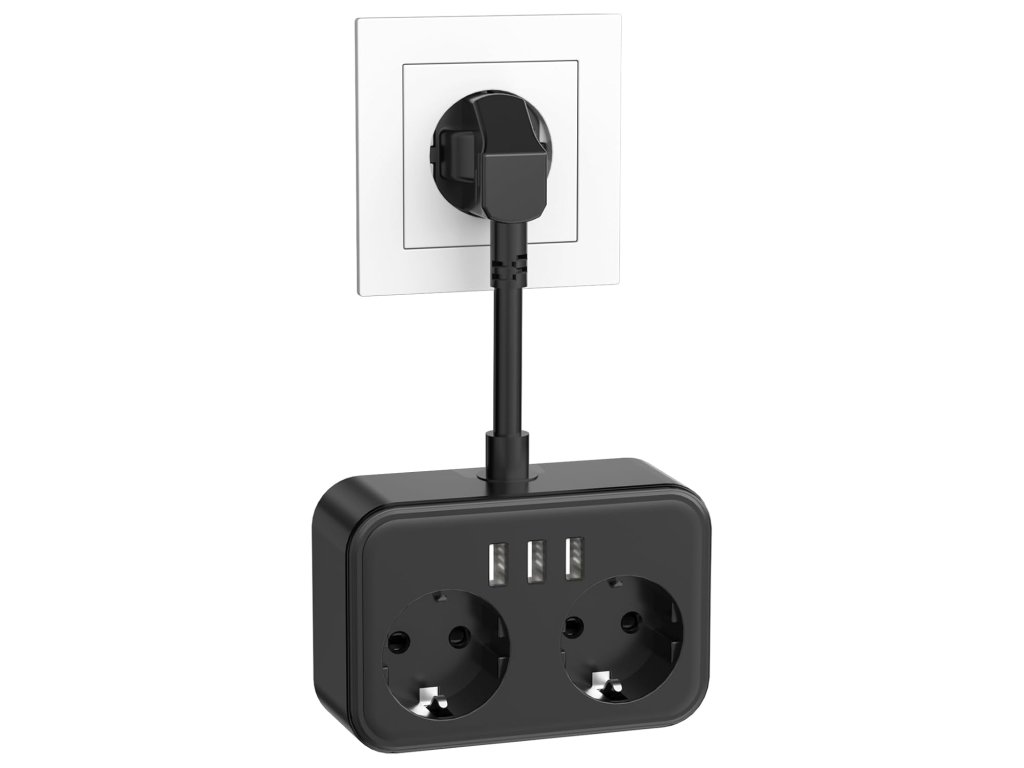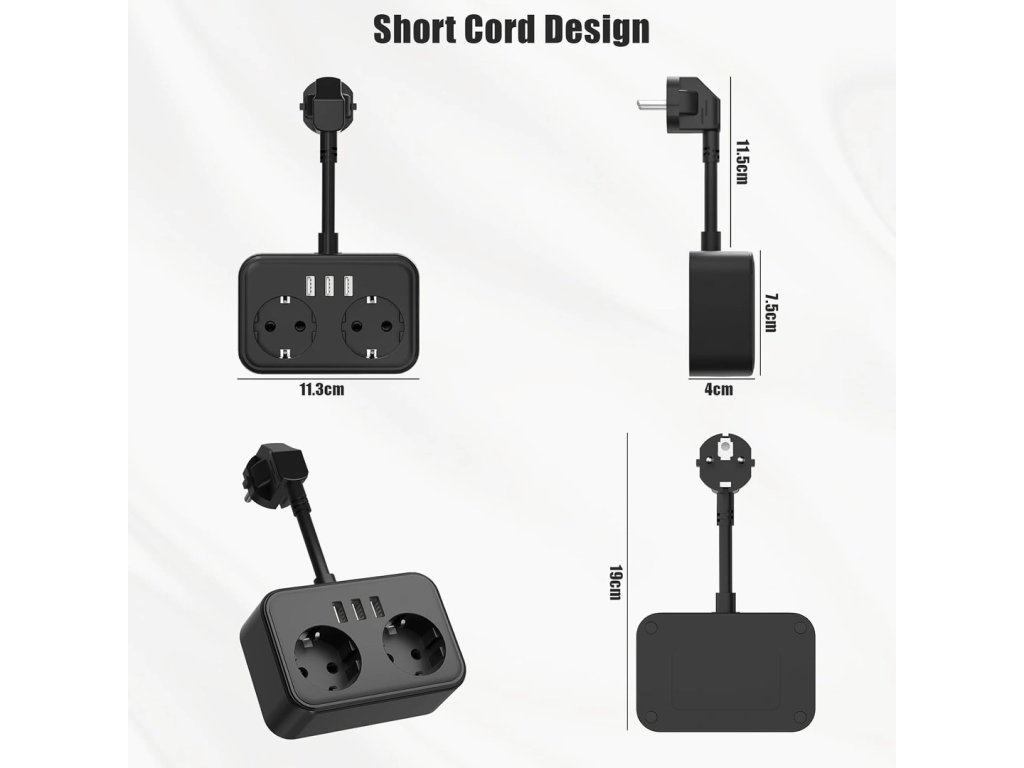 Konstrukce je navržena s důrazem na bezpečnost a stabilitu při každodenním používání. Černá povrchová úprava působí moderně a snadno splyne s interiérem. Zařízení je optimalizováno pro rychlé a bezpečné nabíjení běžné elektroniky, jako jsou chytré telefony, tablety nebo notebooky. Kompaktní rozměry zajišťují, že prodlužovací kabel nezabírá zbytečně mnoho místa, ale přitom poskytuje veškerou potřebnou konektivitu.