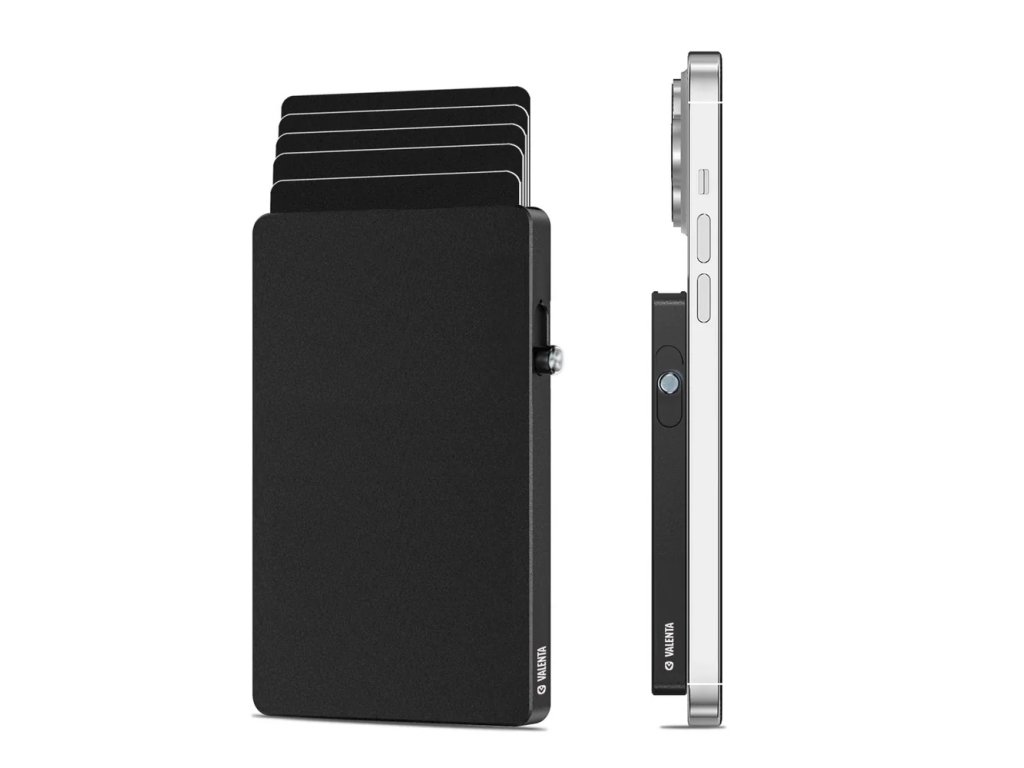 Černý hliníkový chránič karet MagSafe s vyhazovačem. Pojme až 6 karet, RFID ochrana, extra zámek proti vypadnutí, CNC povrchová úprava, silné MagSafe uchycení, ultratenký design.