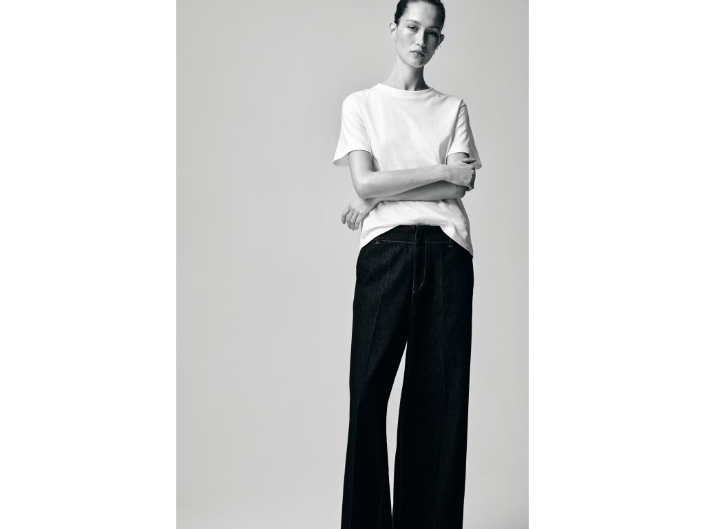 Model má kulatý výstřih se žebrovaným lemem, který drží tvar i po opakovaném praní. Mírně spuštěná ramena dodávají lehce uvolněný vzhled, zatímco střih Regular fit zajišťuje komfort bez zbytečného obepínání.