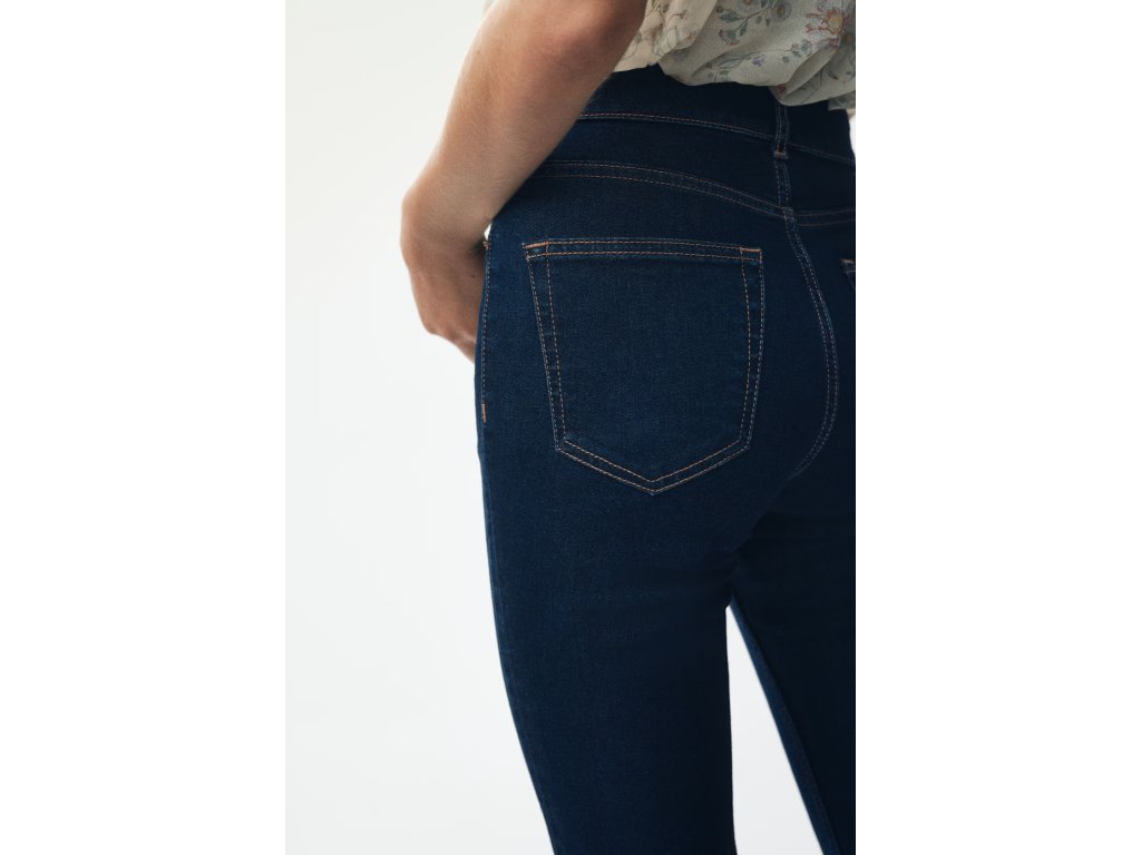 Tmavý denim blue odstín je univerzální a snadno kombinovatelný – skvěle funguje s crop topem, halenkou i sakem. Výrazný střih, který zůstává trendy sezónu za sezónou.