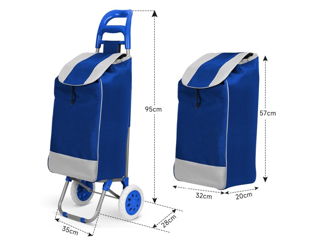 Usnadněte si nakupování s tímto praktickým a stylovým skládacím nákupním vozíkem HOMELUX v modré barvě. S velkou kapacitou 36 pohodlně pojme i větší nákupy, takže už nebudete potřebovat další tašky. Na zadní straně vozíku je navíc malá kapsa na zip pro uložení peněženky nebo telefonu.