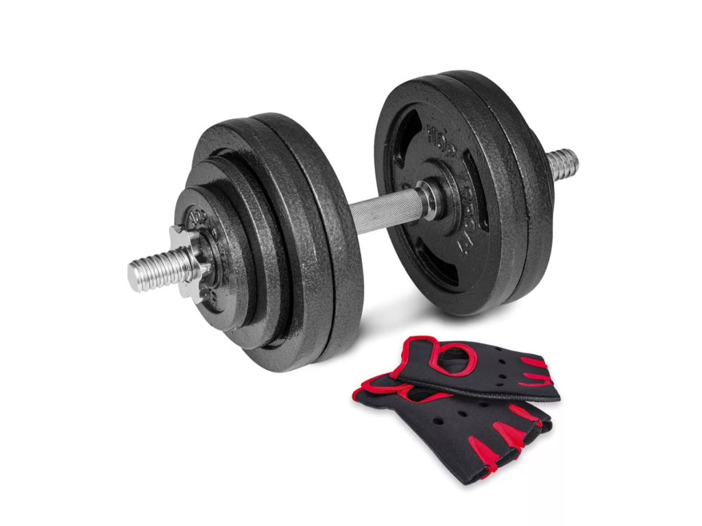 Hop-Sport Litinová Činka 30 kg Jednoruční Sada Kotoučů Rukavice