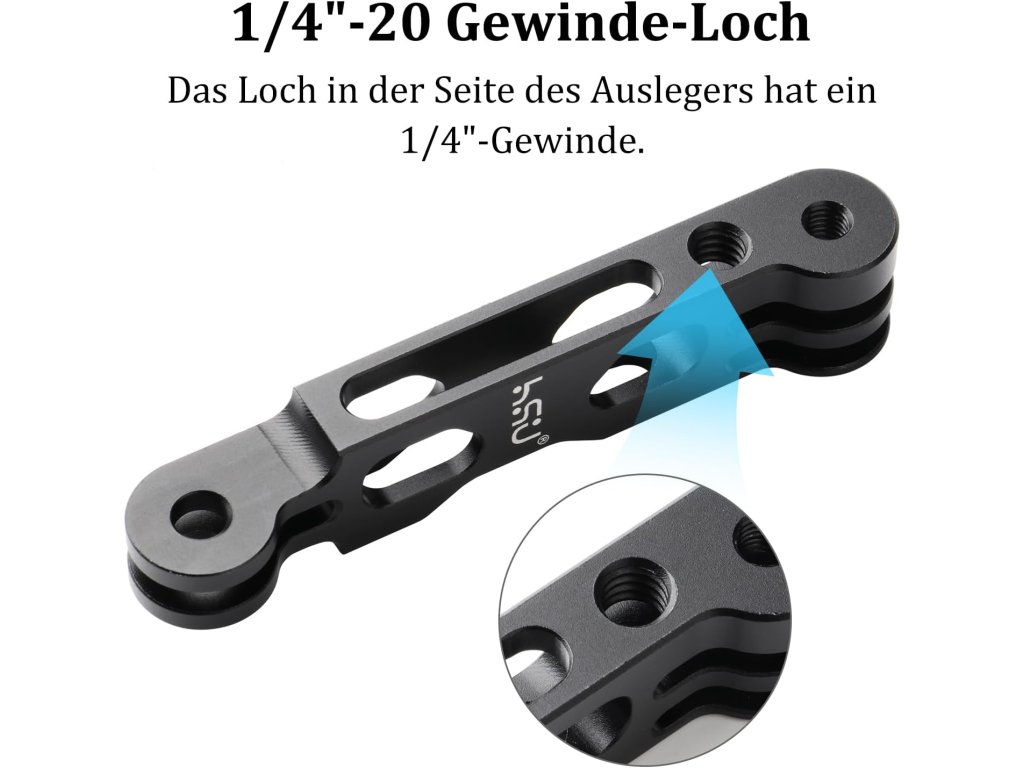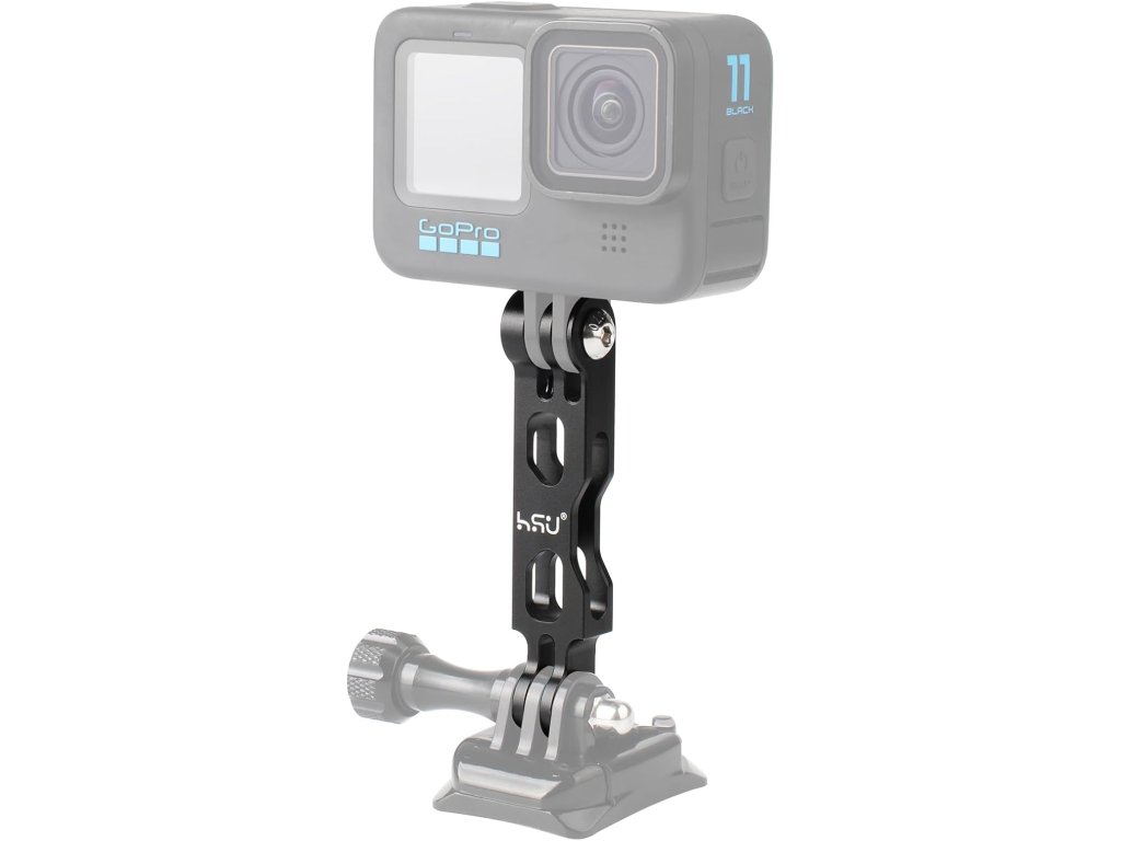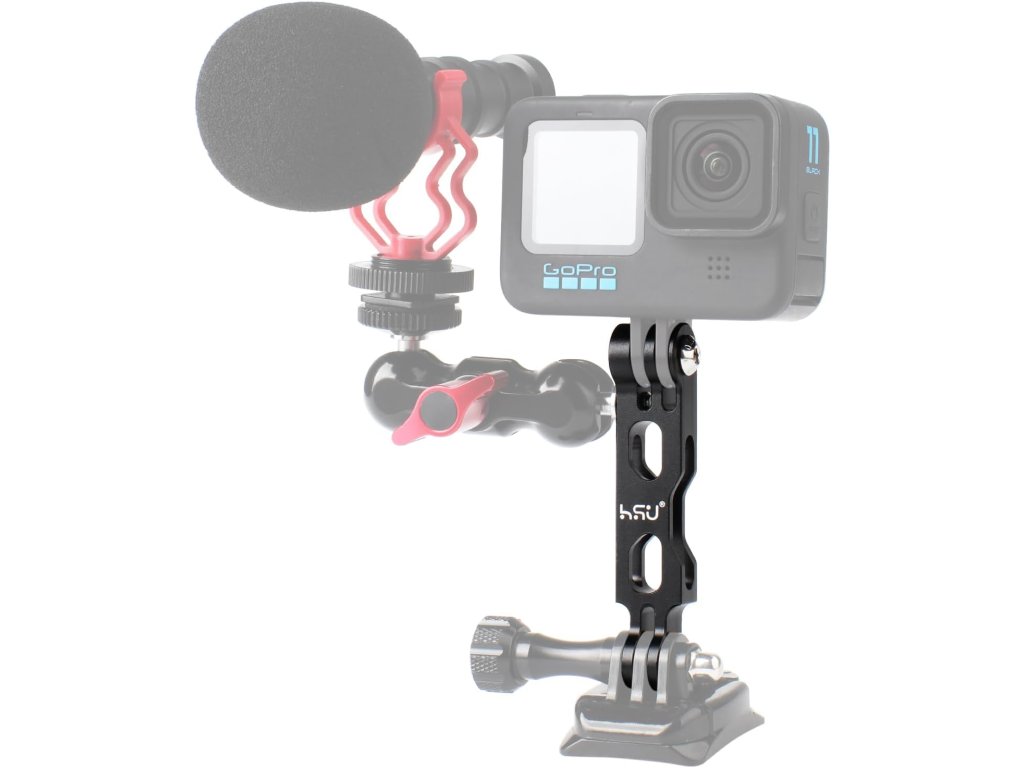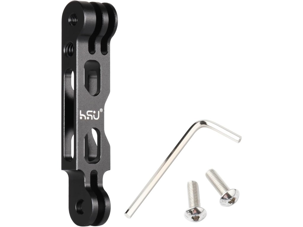 HSU prodlužovací rameno z kvalitní hliníkové slitiny (8,5 cm, 18 g) je navrženo pro akční kamery (kompatibilní s GoPro Hero 3-12, Insta360 ACE Pro, Osmo Action 3/4 a dalšími). Disponuje 1/4" závitovým otvorem pro rozšíření příslušenství a jeho aerodynamický design snižuje odpor větru pro stabilnější záznam.