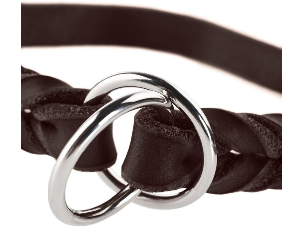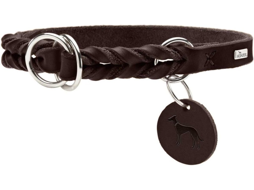 HUNTER tréninkový obojek v tmavě hnědé barvě je vyroben z jemné, ručně tkané a měkké pravé kůže se zaoblenými okraji. Má integrovanou dorazovou vložku v kůži. Obojek je vhodný pro obvod krku 55-60 cm a je určen pro každodenní použití, psí sporty a výcvik. Zapíná se na přezku.