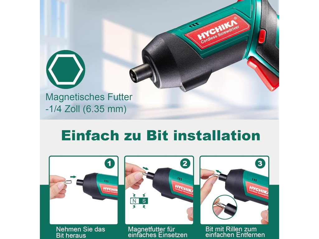 Hychika 3,6V akumulátorová elektrická šroubovací pistole - kompaktní a výkonný pomocník pro každou práci: Aku šroubovák Hychika 3,6V je ideálním nástrojem pro širokou škálu šroubovacích úkolů v domácnosti, kanceláři i na pracovišti. S maximálním točivým momentem 6 Nm si snadno poradí s utahováním a povolováním šroubů při montáži nábytku, zavěšování obrazů, opravách spotřebičů a dalších pracích.