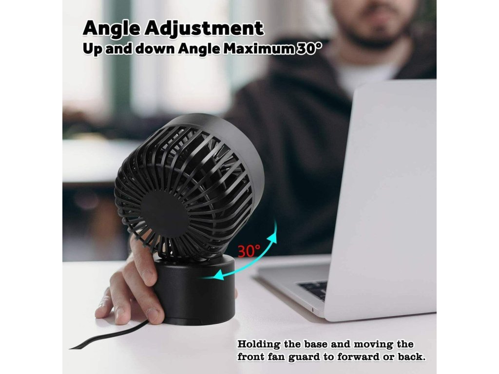 Můžeš si ho i naklonit nahoru nebo dolů, jak ti bude vyhovovat. A umí se i sám otáčet do stran, takže bude foukat po celé tvé pracovní desce!