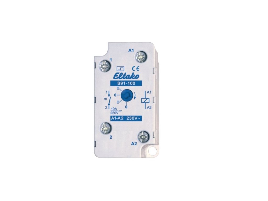 Impulzní spínač Eltako S91 100 230VAC je spínací relé pro montáž na omítku. Je určen pro provozní napětí 230 V/AC a má spínací proud až 10 A. Disponuje jedním spínacím kontaktem a je vybaven ručním ovládáním s indikací polohy.