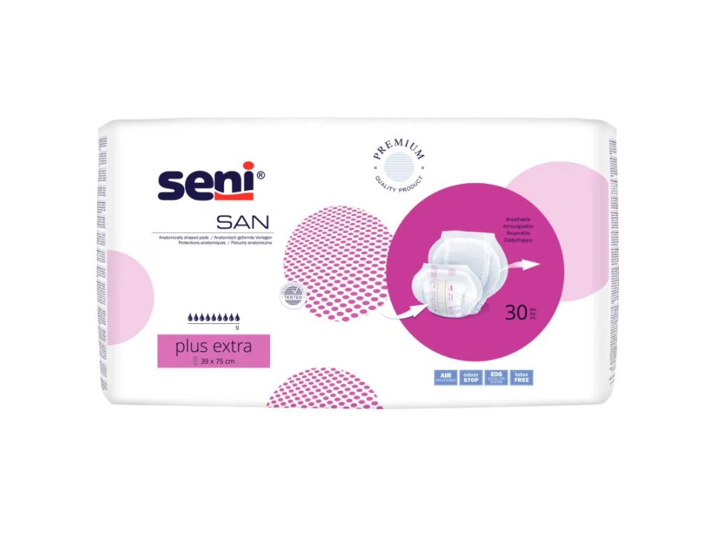 Inkontinenční vložky Seni San Plus Extra představují optimální řešení pro lidi, kteří oceňují nošení pohodlí a zabezpečení i při velmi závažné slabosti močového měchýře. Jsou také vhodné pro inkontinenci stolice, což je činí ideální volbou pro osoby s omezenou mobilitou nebo nadváhou.