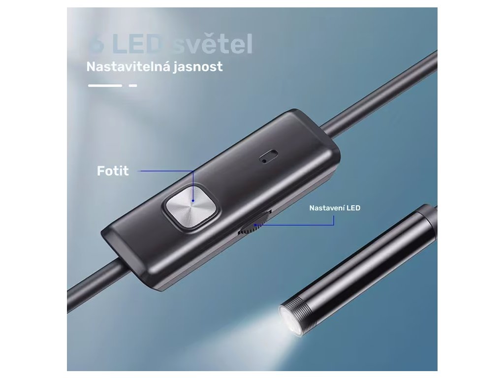 Inspekční kamera endoskop 2m s měkkým kabelem a USB/Type-C připojením