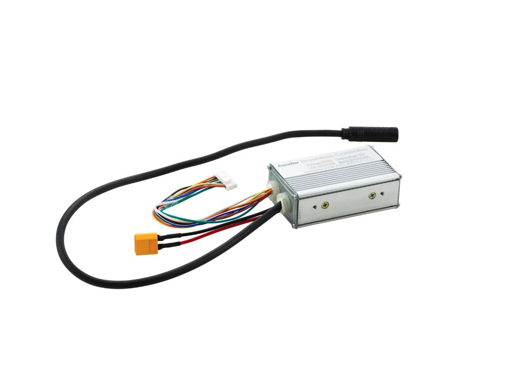 Řídicí jednotka pracuje s napětím 48 V a je vybavena ochranou proti podvybití baterie, která pomáhá chránit akumulátor při provozu. Proudový limit 20 A zajišťuje vyvážený poměr mezi výkonem a efektivitou. Konstrukce odpovídá standardnímu provedení používanému u těchto modelů koloběžek.