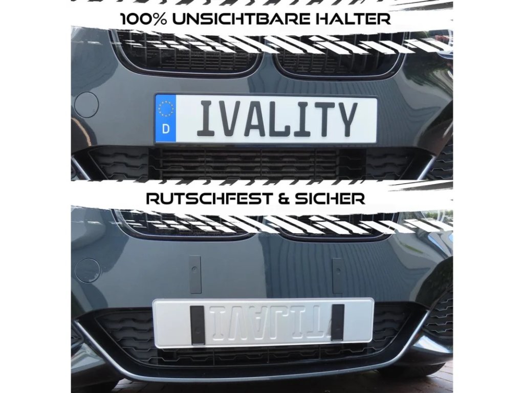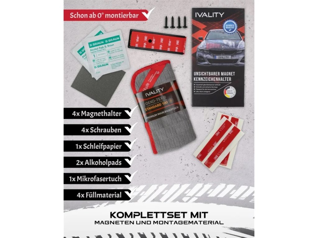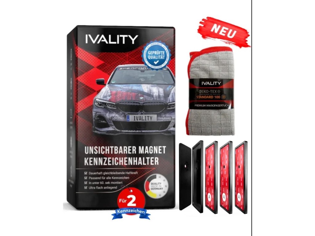 IVALITY magnetický držák registračních značek (RZ), sada 2 kusů, umožňuje rychlou a snadnou montáž bez vrtání. Je kompatibilní se všemi auty, zajišťuje extrémně pevné držení a je vhodný pro lakování/polepování. Lze jej rozšířit pro výměnné/show RZ.