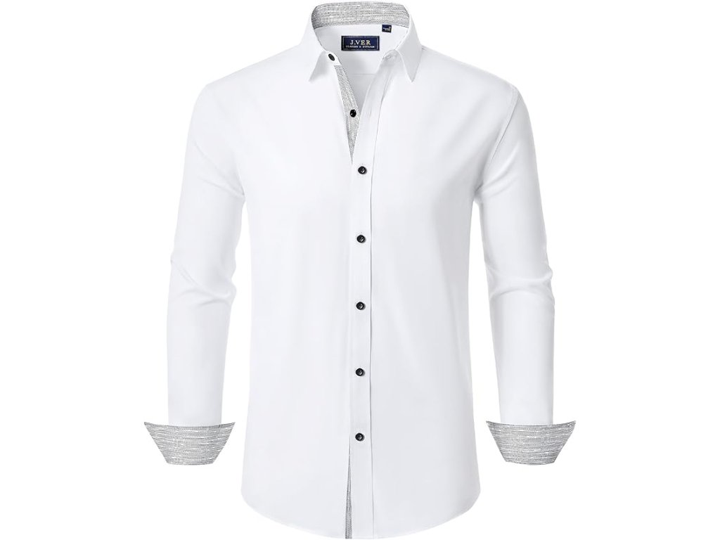 J.VER Pánská strečová košile Regular Fit – Bílá se vzorem (XL)