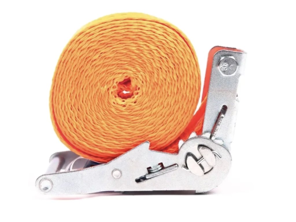 Odolný jednodílný upínací pás s ráčnou a volným koncem o nosnosti 2000 kg a délce 4 m. Vyrobený ze 100% polyesteru, ideální pro bezpečné upevnění nákladu při transportu.