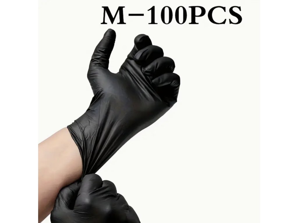 Jednorázové černé nitrilové rukavice, 100 kusů, velikost M