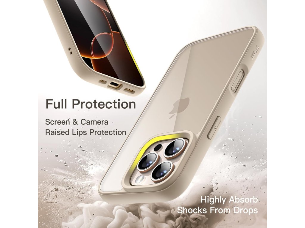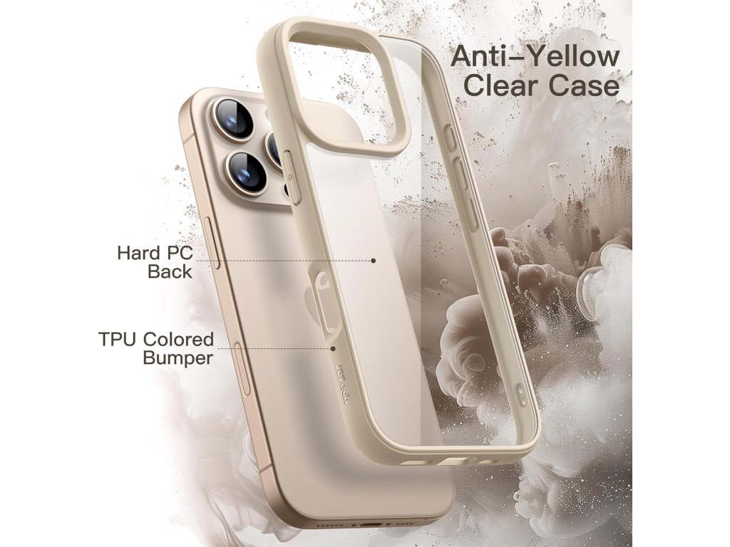 JETech pouzdro na iPhone 16 Pro Max, transparentní s matným rámem, pouštní titan