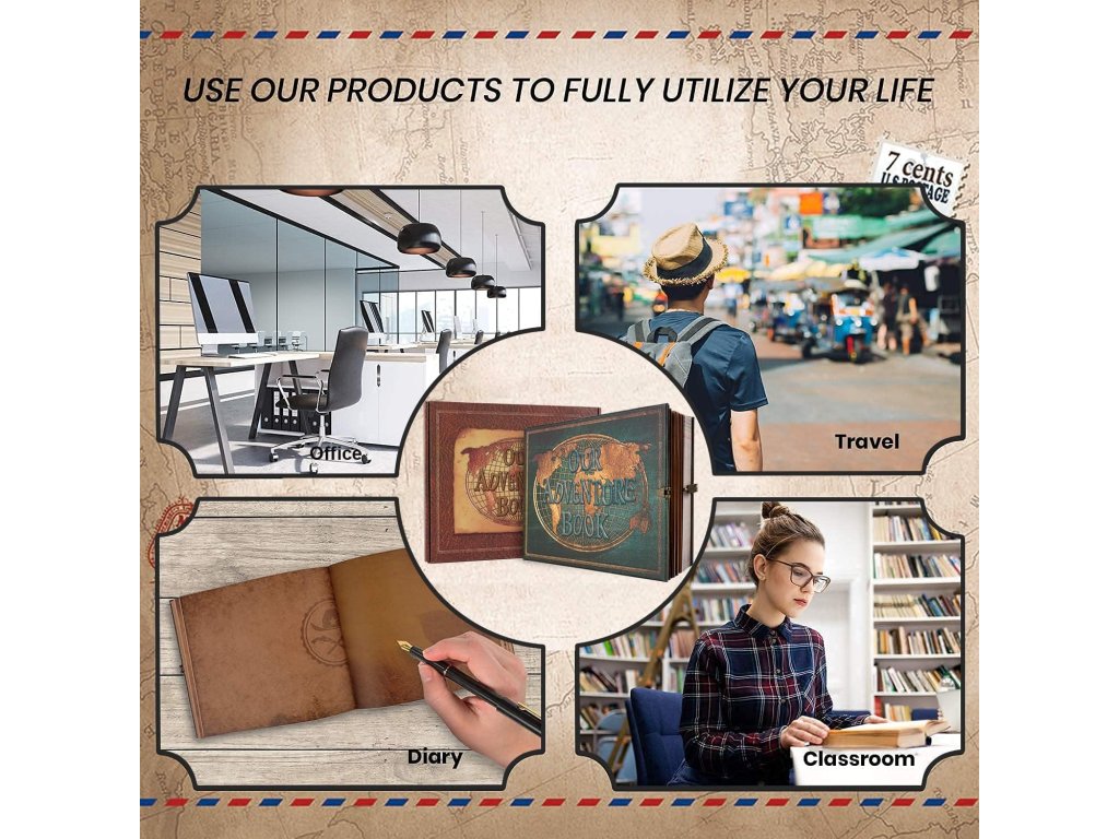 Ručně vyrobené personalizované fotoalbum JIMBON Our Adventure Book v zelené barvě o rozměrech 25 x 20 cm. Obsahuje 180 prázdných stran (90 listů) pro více než 300 fotografií. Album je voděodolné, prachotěsné, vzduchotěsné a stálobarevné. Strany jsou kvalitně zpracované, 3D design obálky s detaily z hliníkové fólie. Prokladové papíry s filmovým potahem zabraňují slepení fotografií a umožňují na ně psát. Ideální pro vlastní tvorbu vzpomínkových knih, cestovních deníků a svatebních alb. Kvalitní vintage kraftový papír zajišťuje trvanlivost.