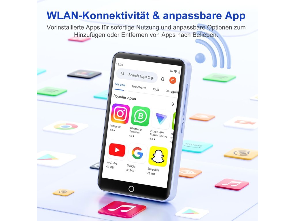 Přehrávač Joliker M301 je mnohem více než jen obyčejný MP3 přehrávač. Díky operačnímu systému Android a přístupu do obchodu Google Play můžete přímo do zařízení stahovat oblíbené aplikace jako YouTube Kids, Audible nebo Kindle. Výkonný 8jádrový čip MTK zaručuje plynulý chod bez zasekávání.