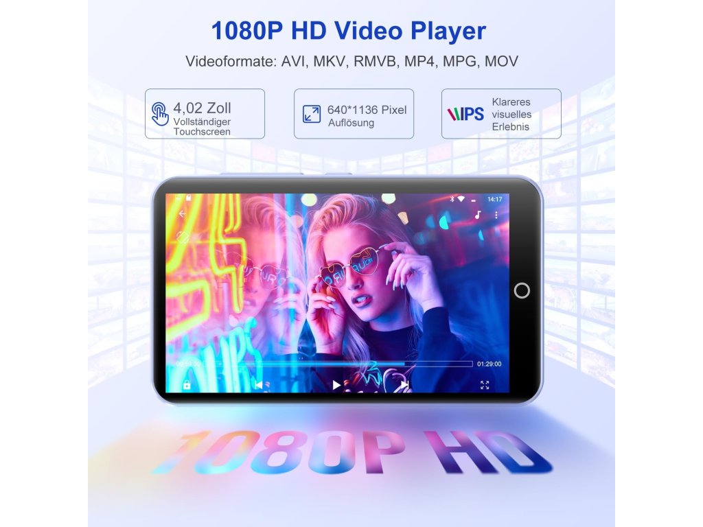 Zařízení disponuje 4,02 palcovým IPS displejem, který nabízí věrné podání barev a široké pozorovací úhly, což oceníte zejména při sledování filmů v široké škále podporovaných formátů bez nutnosti konverze. Interní paměť 16 GB je doplněna o 64 GB micro SD kartu, která je součástí balení, čímž získáte celkem 80 GB prostoru. Pokud by to nestačilo, přehrávač podporuje rozšíření až na 1 TB. Pro poslech můžete využít vestavěný reproduktor, drátová sluchátka z balení nebo bezdrátové připojení Bluetooth.