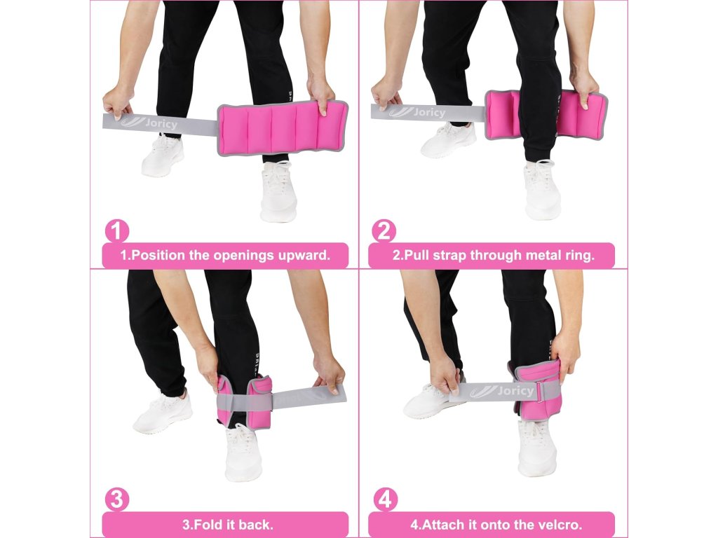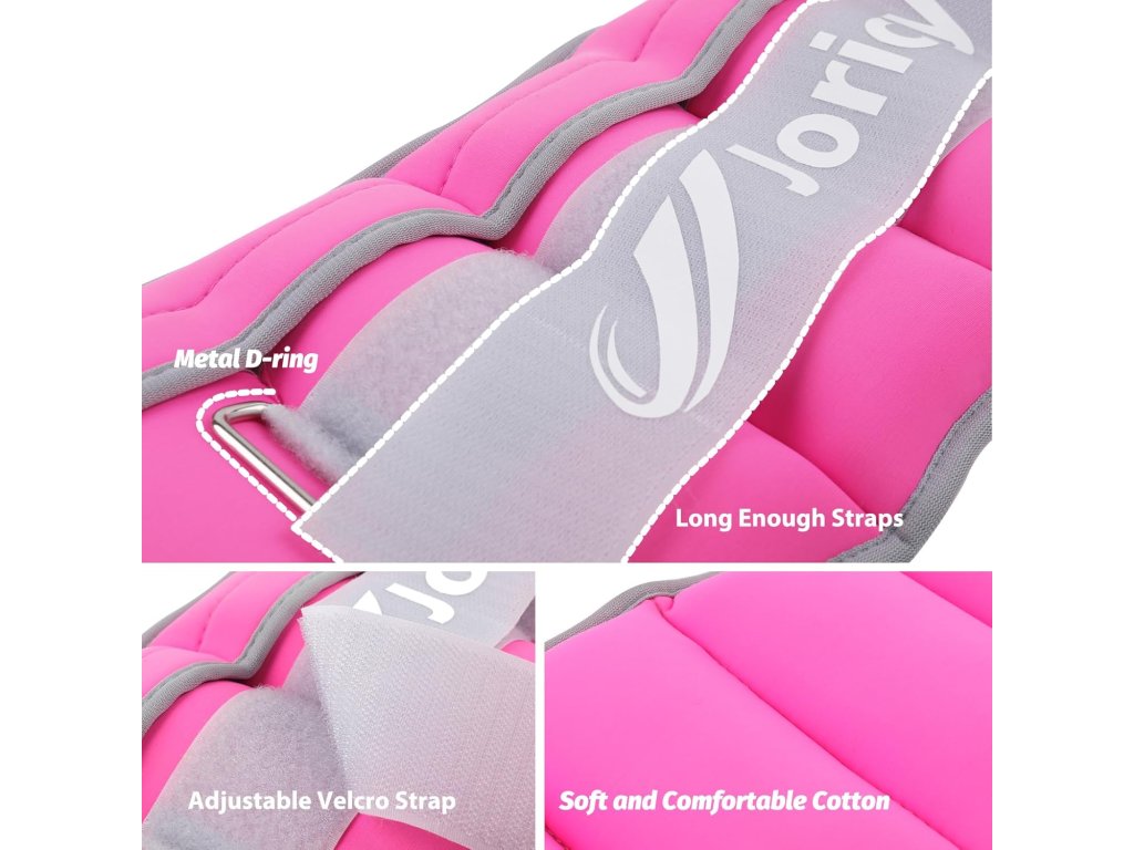 JORICY nastavitelné závaží na kotníky (1 pár, 2x 1,5 kg). Ideální pro fitness, jogging, chůzi, aerobik. Pohodlné, odolné, s vyjímatelnými sáčky na zátěž. Růžové
