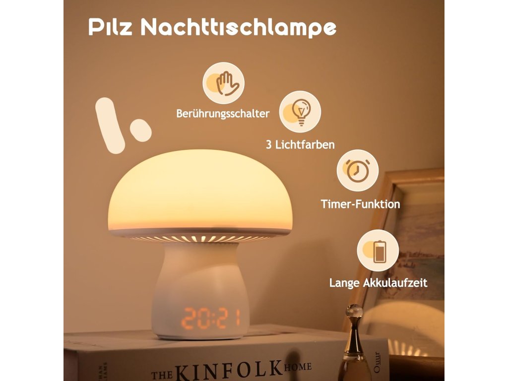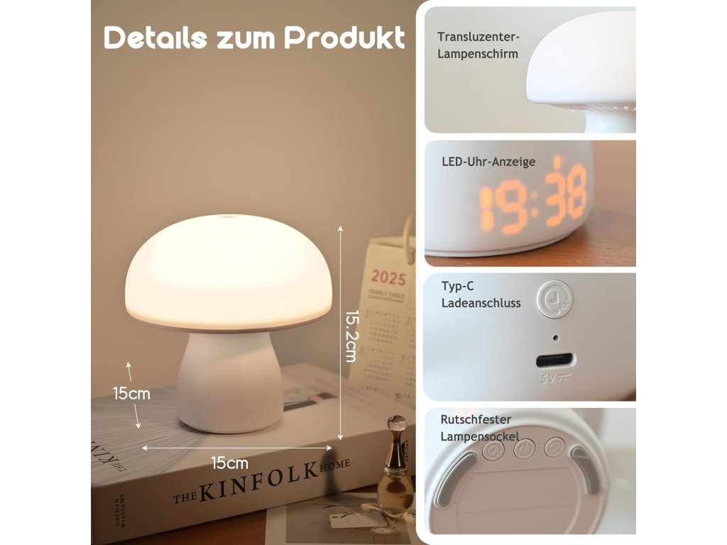 Noční lampička značky Justup kombinuje roztomilý vzhled houby s moderními technologiemi pro maximální komfort v ložnici nebo dětském pokoji. Je vyrobena z odolného plastu a vybavena úspornou LED technologií v energetické třídě A. Díky vestavěné baterii s vysokou kapacitou 3600 mAh funguje lampa zcela bezdrátově, což umožňuje její libovolné umístění bez závislosti na elektrické zásuvce. Nabíjení probíhá pohodlně přes USB port.