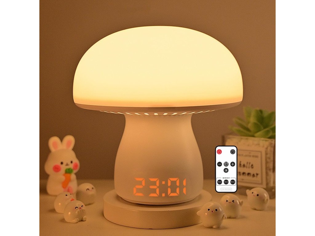 Justup Noční LED lampička ve tvaru houby se zobrazením hodin