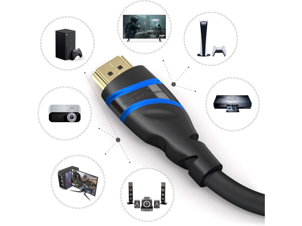KabelDirekt 8K HDMI 2.1 Ultra High Speed kabel vás katapultuje do budoucnosti zábavy. Tento kabel typu samec/samec je dokonalým řešením pro propojení vaší nejnovější technologie, jako jsou grafické karty Radeon RX 6000 a GeForce RTX 3000, konzole PlayStation 5, Xbox Series X/S a 8K televizory.