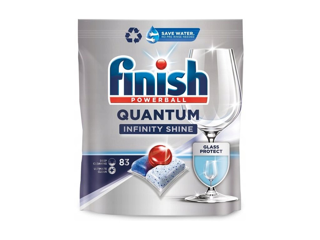 Kapsle do myčky Finish Quantum Infinity Shine poskytují nejen dokonalou čistotu, ale také chrání sklo před korozí a dodávají mu oslnivý lesk. Jedno balení obsahuje 83 kusů, které stačí na 83 mycích cyklů.