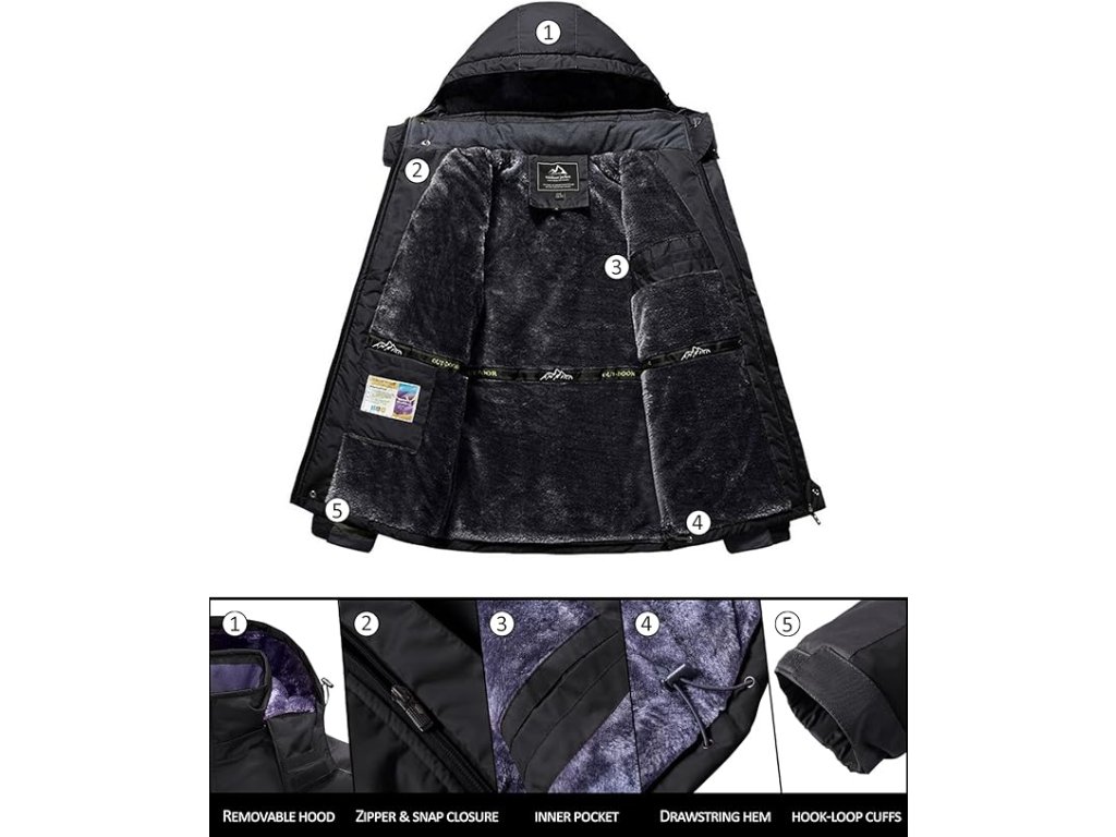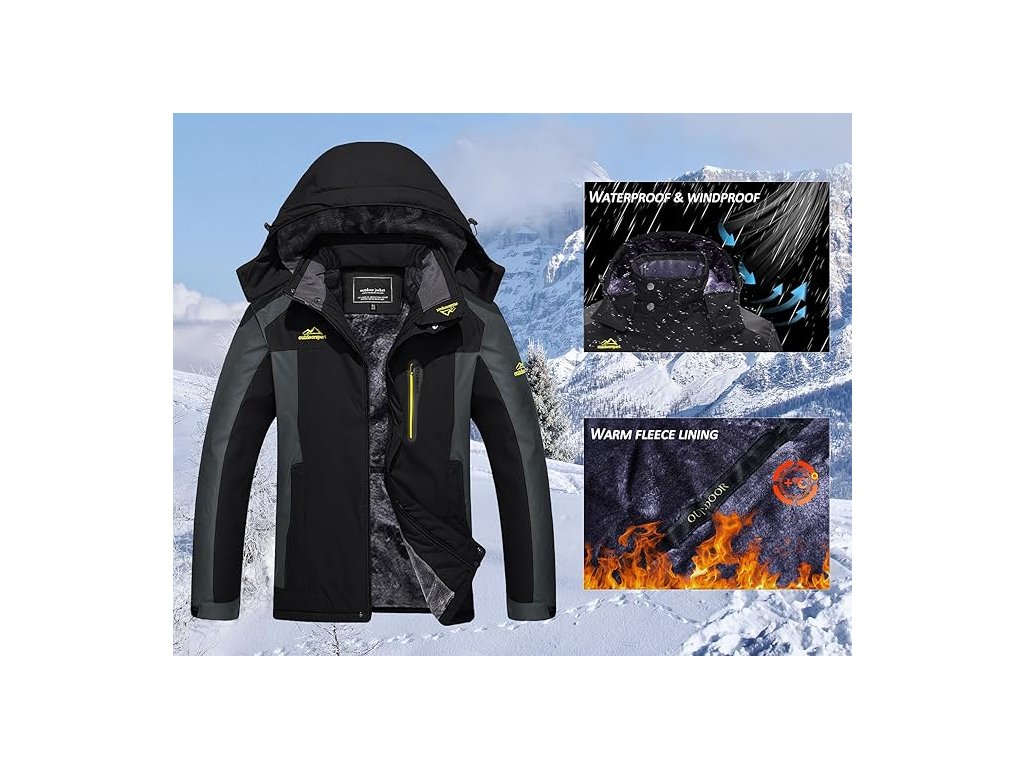 Vnitřní fleecová podšívka pomáhá udržet teplo a zároveň zajišťuje příjemný pocit při nošení. Bunda je vybavena odnímatelnou kapucí, kterou lze přizpůsobit pomocí stahovací šňůrky a suchého zipu pro lepší ochranu před větrem.