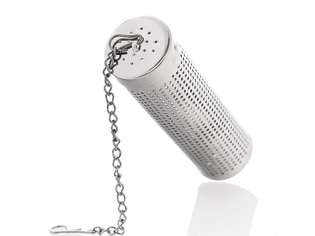 Ideální pro lahve a termosky Díky štíhlému kulatému tvaru a rozměrům 2,4 x 2,4 cm je speciálně navrženo pro vkládání do hrdel standardních pitných lahví termosek nebo úzkých láhví. Pohodlné použití a hygiena Sítko je vybaveno malým řetízkem a bajonetovým uzávěrem na hlavě šroubu pro snadné a bezpečné zavěšení a vyjmutí. Má robustní tělo které zajišťuje kontrolu nad výsledkem vaření. Je snadno čistitelné a vhodné do myčky nádobí.