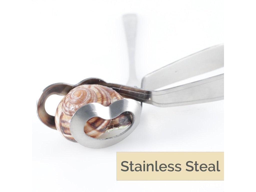 Tato sada příborů je navržena pro příjemnou a hygienickou konzumaci šnečích a korýšových specialit. Kvalitní nerezová ocel a promyšlený design dělají ze sady cenného pomocníka ve vaší kuchyni. Určení a funkce Sada je určena pro snadnější konzumaci šneků a korýšů. Kleště slouží k pevnému uchopení ulity a vidlička k vydlabávání obsahu. Jedná se o klasické příbory pro šnečí pokrmy které by bylo obtížné konzumovat běžnou lžící nebo vidličkou. Kvalita a design Příbory jsou vyrobeny z vysoce kvalitní nerezové oceli a mají elegantní lesklou stříbrnou barvu. Materiál je odolný proti skvrnám tvarově stálý a zaručuje dlouhou životnost. Kleště na šneky pohodlně padnou do ruky a snadno se používají pro polohování a otáčení. Hygiena a údržba Sada je navržena pro hygienické zacházení s pokrmy. Oba kusy příborů jsou vhodné do myčky nádobí což usnadňuje čištění. Jsou také přenosné a vejdou se do každého malého šuplíku.