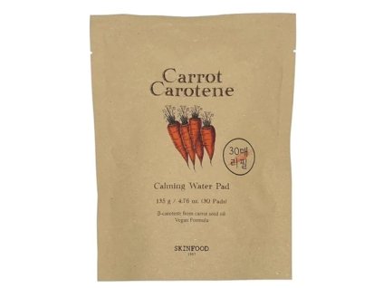 Skinfood Carrot Carotene jsou hydratační polštářky na obličej, které zklidňují a vyživují pokožku. Balení obsahuje 30 polštářků (135 g).