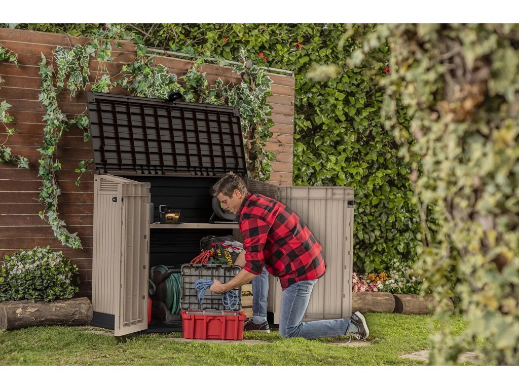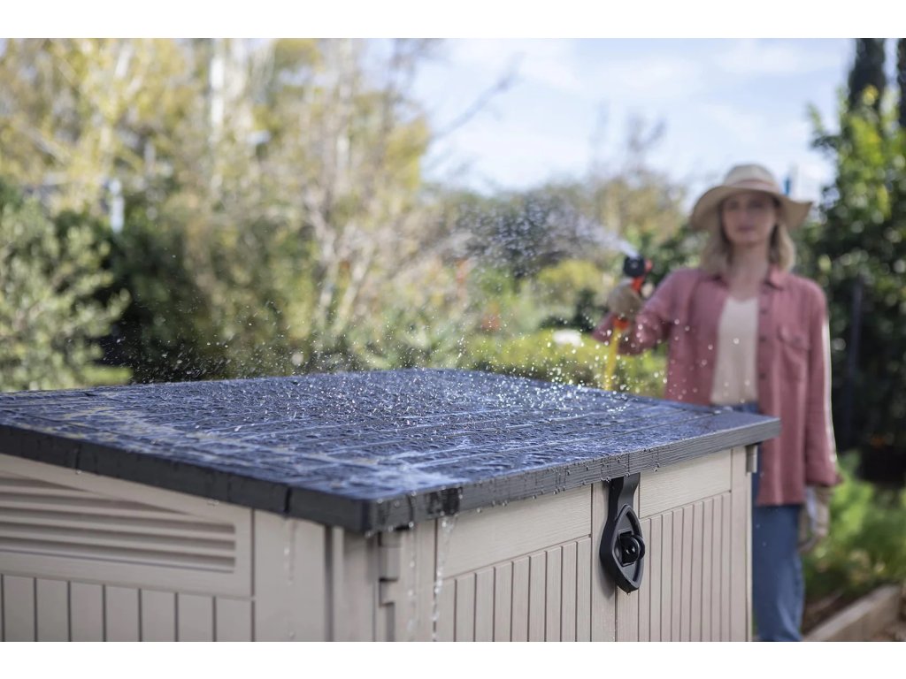 Zahradní domek na popelnice a nářadí od renomovaného výrobce Keter je vyroben z vysoce kvalitního polypropylenu, který dokonale odolává UV záření i nepříznivým povětrnostním vlivům. Materiál nehnije, nerezaví a nevyžaduje prakticky žádnou údržbu, což zaručuje dlouhou životnost a stálý vzhled po mnoho let.